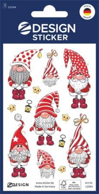 Matrica, papír, 1 ív, 76x120 mm, AVERY ZWECKFORM, "Z-Design No.52094", karácsonyi törpék